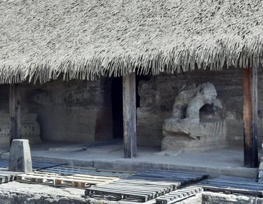 La primera es una plataforma de piedra destinada al sacrificio gladiatorio, donde prisioneros combatían contra guerreros mexicas. La segunda, y la más emblemática, es el templo monolítico custodiado por dos jaguares y una serpiente, donde se realizaban los rituales de iniciación de los guerreros águila y jaguar.