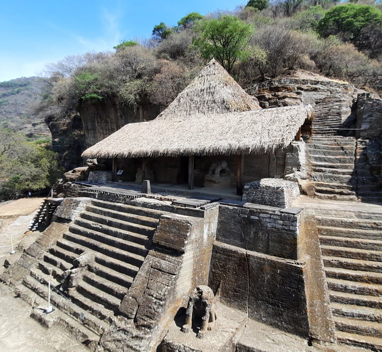 El corazón espiritual del viaje se encuentra en el Centro Arqueológico de Malinalco, un sitio único en Mesoamérica por estar tallado directamente en la roca de la montaña. El acceso, antiguamente restringido a la élite mexica, conduce a cinco estructuras principales cargadas de simbolismo.