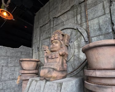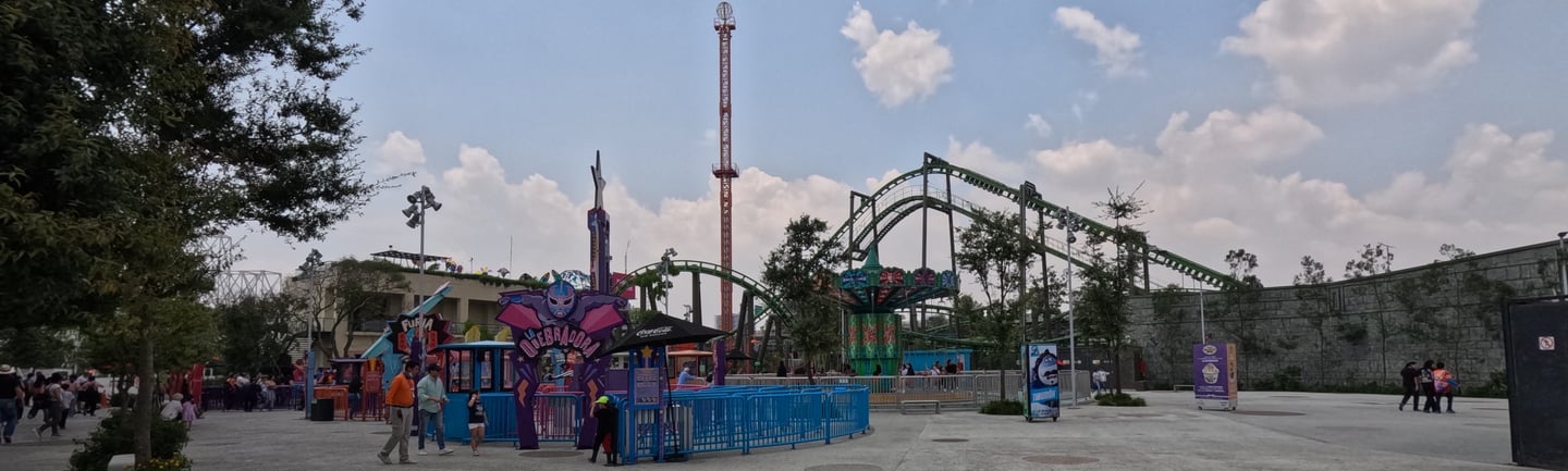 Para los amantes de la cultura mexicana, Serpéntika es una de las joyas del parque. Esta montaña rusa suspendida está inspirada en Quetzalcóatl, con una ambientación llena de templos, columnas y detalles prehispánicos que hacen que incluso la espera en la fila sea parte de la experiencia. Su recorrido de 540 metros combina velocidad, curvas y diversión sin ser extrema, perfecta para quienes quieren emoción sin miedo.