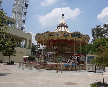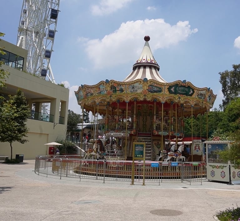 Uno de los elementos más sorprendentes del parque es su carrusel veneciano de dos pisos, una auténtica obra de arte de fabricación italiana, completamente pintada a mano. Cada panel y figura es un detalle visual que lo convierte en uno de los juegos más emblemáticos de todo Chapultepec.