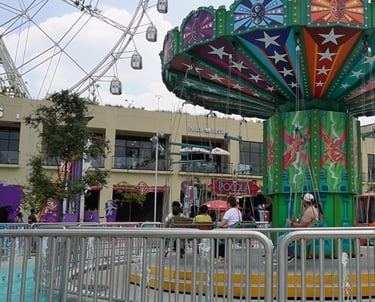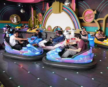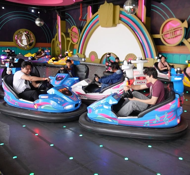 Aztlán también cuenta con una amplia zona familiar, llena de juegos clásicos como los carritos chocones, aquí llamados Rocola Chocona, donde la música y los choques hacen que la diversión nunca falte.