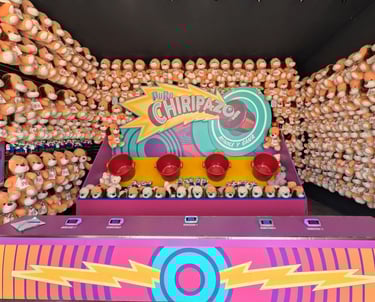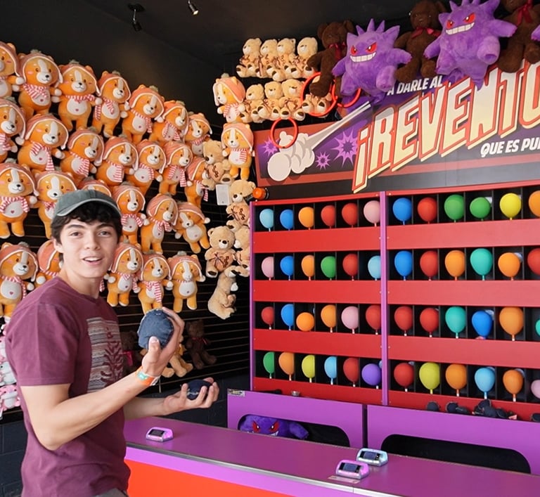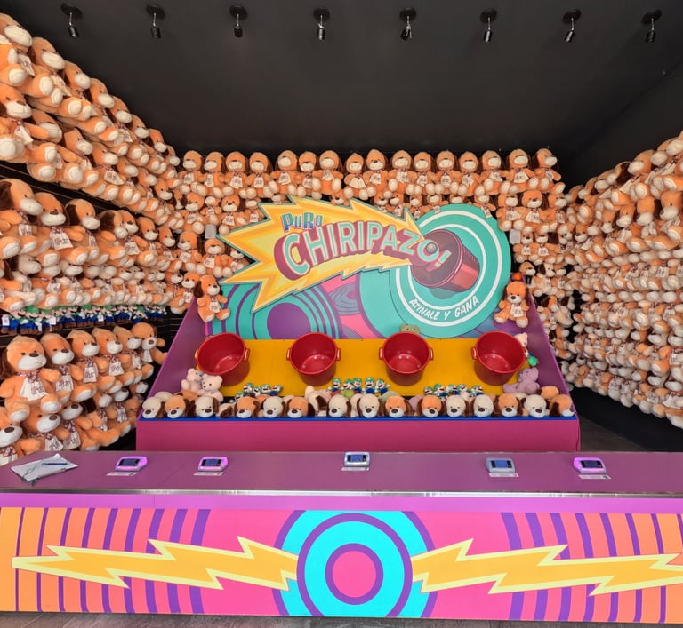 La zona de destreza es otro gran atractivo, con juegos de puntería y habilidad que ofrecen premios de distintos tamaños, recordando a las ferias tradicionales.