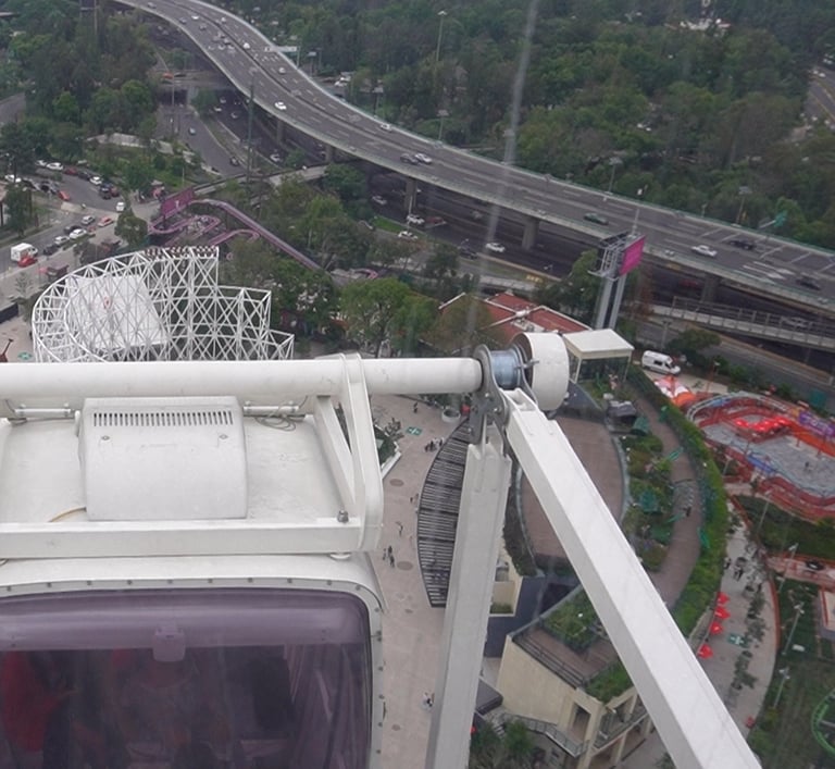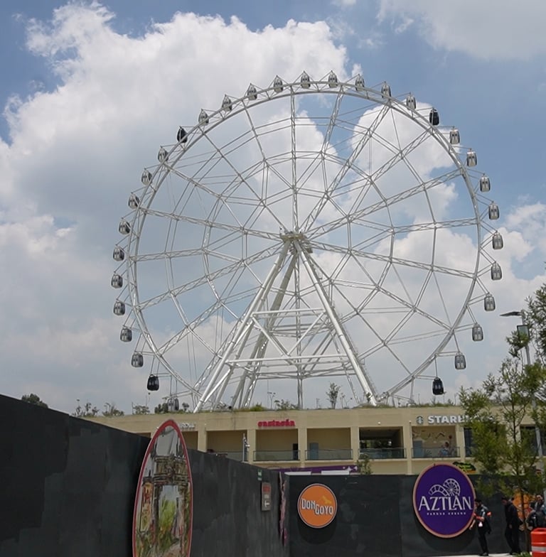 Con una altura de 85 metros, la rueda de la fortuna de Aztlán ofrece una de las mejores vistas panorámicas de la Ciudad de México. Desde sus cabinas —con capacidad para seis personas, ventilación y bocina integrada— se puede observar el Bosque de Chapultepec, el Castillo, Los Pinos y gran parte de la ciudad.